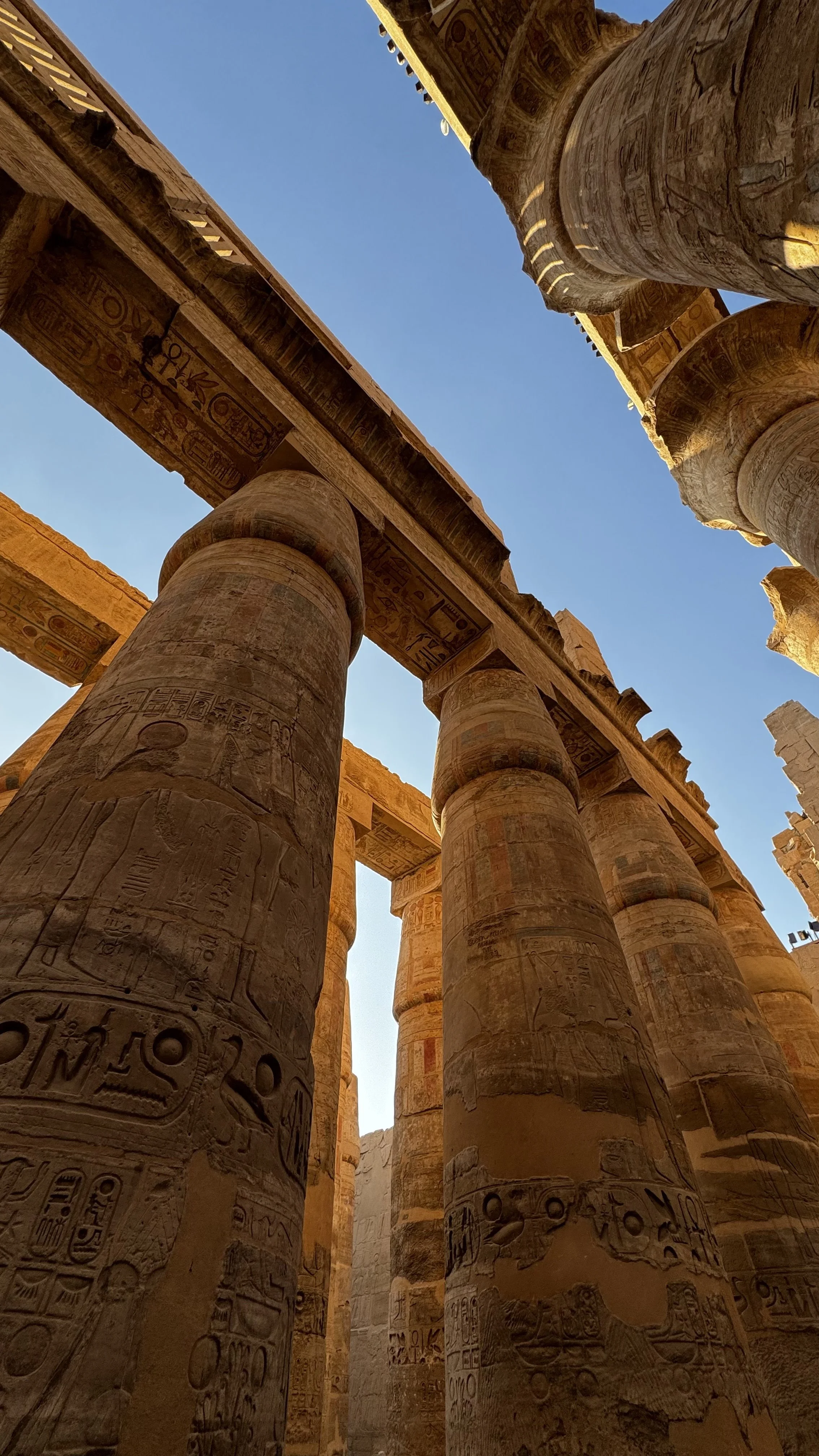 Complesso templare di Karnak, il tempio più grande del mondo con 134 colonne. Soffermatevi sulle statue di sfinge a testa di Ariete, il simbolo del Dio Amon che protegge il faraone fra le zampe della sfinge.